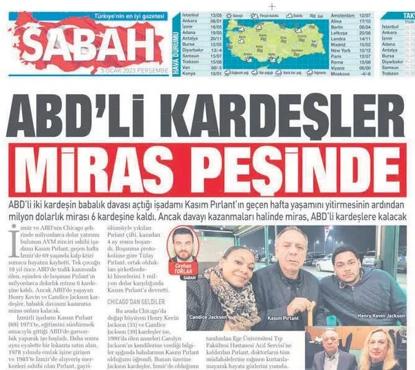 ABD’li Henry ile Candice Jackson kardeşler, geçen yıl kalp krizi sonucu yaşamını yitiren ünlü işadamı Kasım Pırlant’a açtıkları babalık davasını kazandılar. Kardeşler böylece Pırlant’ın 3 milyar liralık servetine de ortak oldular