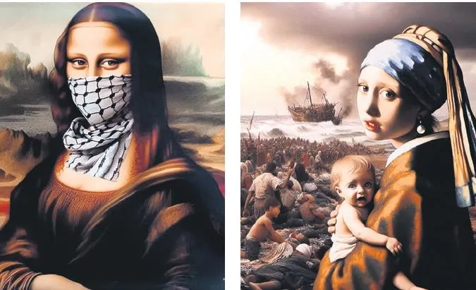 Erzurum Raci Alkır Güzel Sanatlar Lisesi Görsel Sanatlar Öğretmeni Yakup Dursun, Gazze'deki soykırıma dikkat çekmek için dünyaca ünlü ressamların eserlerini yeniden tasarladı. Dursun, 'Sanatın isyanı, Filistin'de duyguların çığlığı' konulu çalışmasında 'İnci Küpeli Kız' eserini savaşın yıkıcılığından çıkardığı bebekle, Mona Lisa'yı Filistinlilerin kullandığı kefiye ve kucağındaki küçük çocuğu kurtarırken tuvale aktardı.