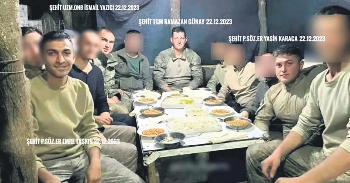 Kuzey Irak'ta 22 Aralık'ta teröristlerce yapılan hain saldırıda şehit olan 6 kahraman asker, ardında yürek yakan hikâyeler bıraktı. Şehitlerimizin şehadete ermeden önceki yakın tarihli video ve fotoğraflarına dair sosyal mecrada yapılan paylaşımlar da yürekleri dağlıyor. Bu paylaşımlardan bir de 'kutluturktc' adlı Instagram hesabından paylaşılan ve 6 şehidimizden 4'ünün yer aldığı bir yemek fotoğrafı oldu.