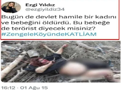 İstanbul Cumhuriyet Savcısı Mehmet Selim Kiraz'ın 31 Mart 2015 tarihinde makam odasında şehit edilmeden önce DHKP-C'li teröristler tarafından alıkonulduğu anın görüntüsünü sosyal medya hesabından paylaşan ve gözaltına alınan İBB çalışanı Eda Ezgi Yıldız, "Adalet, adalet sarayında böyle sağlanır" şeklinde teröristleri destekleyen alçak ifadeler kullanmıştı.