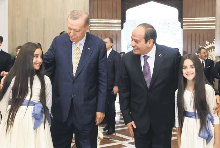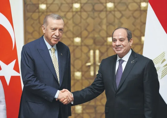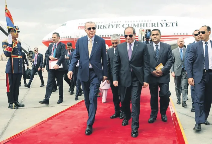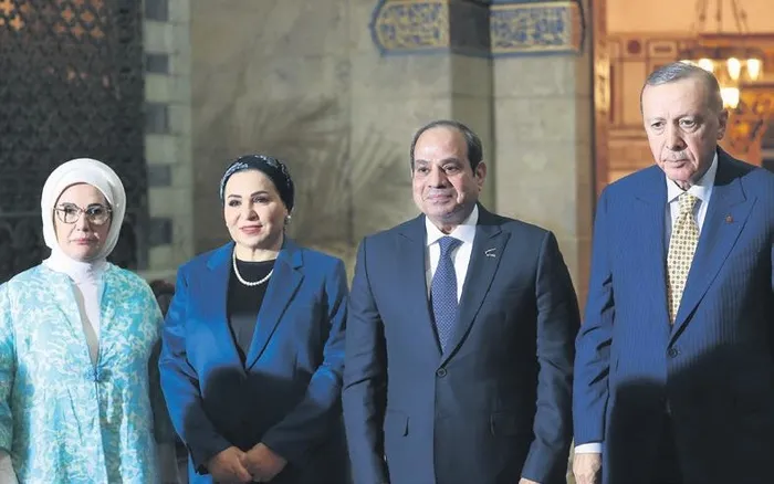 Başkan Recep Tayyip Erdoğan, 12 yıl aradan sonra dün Mısır'a tarihi bir ziyarette bulundu. Erdoğan'la beraberindeki heyet, Kahire Uluslararası Havalimanı'nda Mısır Cumhurbaşkanı Abdulfettah es-Sisi ve Türkiye'nin Kahire Büyükelçisi Salih Mutlu Şen tarafından karşılandı. Erdoğan ile eşi Emine Erdoğan, Dışişleri Bakanı Hakan Fidan, Hazine ve Maliye Bakanı Mehmet Şimşek, Milli Savunma Bakanı Yaşar Güler, Sağlık Bakanı Fahrettin Koca, Sanayi ve Teknoloji Bakanı Mehmet Fatih Kacır, Ticaret Bakanı Ömer Bolat, Cumhurbaşkanlığı İletişim Başkanı Fahrettin Altun ve Cumhurbaşkanı Başdanışmanı Akif Çağatay Kılıç da Kahire'ye geldi. Erdoğan, Sisi tarafından İttihadiye Sarayı'nda resmi törenle karşılandı. Erdoğan tören öncesi kendisine sevgi göstersinde bulunan Mısırlı çocukları sevdi. Emine Erdoğan da Sisi'nin eşiyle sohbet etti. İkili ve heyetler arası görüşmenin ardından ortak basın toplantısı düzenlendi. Sisi tarafından onuruna verilen resmi yemeğe katılan Erdoğan ortak basın toplantısında şunları söyledi: