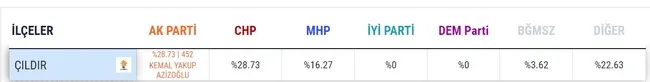 Çıldır ilçesinde 3 parti arasında kıyasıya bir yarış olacağı düşünülüyordu.