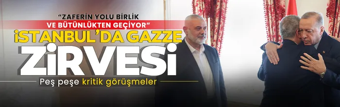 Başkan Recep Tayyip Erdoğan, Hamas Siyasi Büro Başkanı İsmail Heniyye'yi Dolmabahçe Çalışma Ofisi'nde kabul etti. Cumhurbaşkanlığı İletişim Başkanlığından yapılan açıklamaya göre, görüşmede, İsrail'in Gazze başta olmak üzere Filistin topraklarına yönelik saldırıları, insani yardımların Gazze'ye yeterli düzeyde ve kesintisiz ulaştırılması için yapılması gerekenler, bölgede adil ve kalıcı barış süreciyle ilgili konular ele alındı.