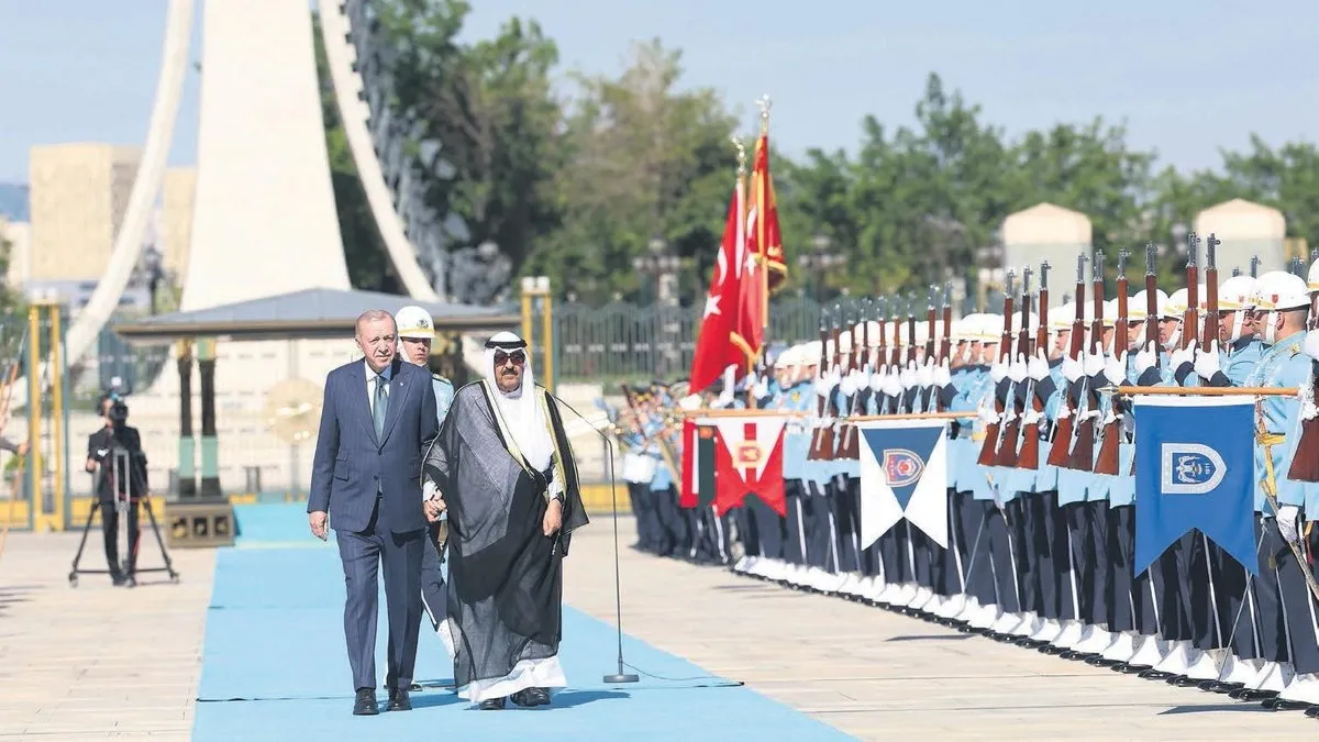 Cumhurbaşkanı Recep Tayyip Erdoğan, resmi ziyaret için Ankara'ya gelen Kuveyt Emiri Kuveyt Emiri Meşal el-Ahmed el-Cabir es-Sabah'ı resmi törenle karşıladı. Es-Sabah'ın makam aracını, Cumhurbaşkanlığı Külliyesi önündeki caddede karşılayan süvariler, araca protokol kapısına kadar eşlik etti. Cumhurbaşkanı Erdoğan, es-Sabah'ı Külliye'nin ana giriş kapısında karşıladı. Erdoğan ve es-Sabah'ın tören alanındaki yerlerini almasının ardından iki ülkenin milli marşları çalındı. Kuveyt Emiri es-Sabah, Muhafız Alayı Tören Kıtası'nı "Merhaba asker" diyerek selamladı. Törende, tarihte kurulan 16 Türk devletini temsil eden bayraklar ve askerler de yer aldı.