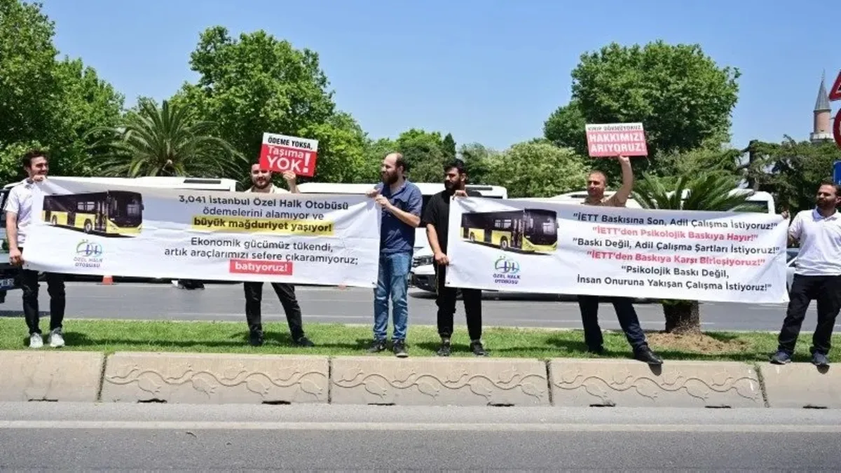 Önceki gün Fatih Saraçhane'deki İBB Binası önünde saat 14.00'da toplanan 3 bin 41 otobüs esnafı, alacaklarını alamadıkları, otobüslerine bakım yapamadıkları, borçlarını ödeyemediklerini ifade ederek eylem gerçekleştirdi. Ekonomik güçlerinin tükendiğini kaydeden esnaf, araçların sefere çıkamayacak durumda olduğunu aktardı. İETT tarafından da mobbinge ve baskı maruz kaldıklarını söyleyen esnaf, bankalara, vergi dairelerine, tamircilere ve SGK'ya olan borçlarından dolayı batma noktasına geldiklerini öne sürdü. Yaklaşan kurban bayramı öncesinde de ibadetlerini yerine getiremeyeceklerini, evlerine ekmek dahi götüremeyecek durumda olduklarını belirtti.