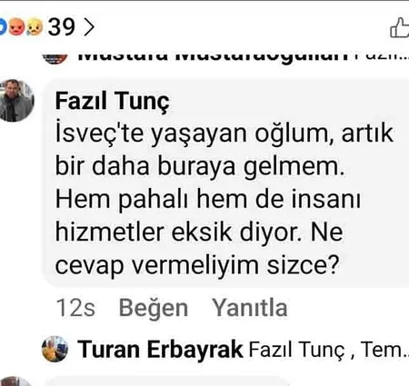 Fazıl Tunç da "İsveç'te yaşayan oğlum, artık bir daha buraya gelmem. Hem pahalı hem de insanı hizmetler eksik diyor. Ne cevap vermeliyim sizce?" paylaşımında bulundu.