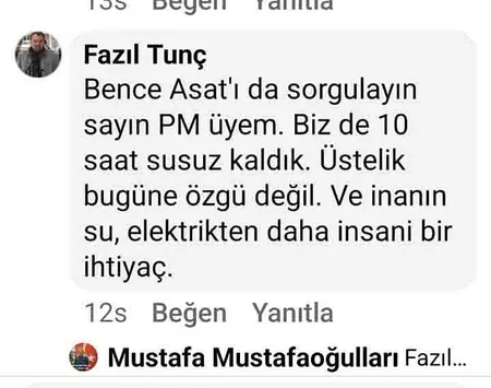 Mustafa Mustafaoğulları'nın tepkisi ise "Bu sıcakta insanlar, günde 3-4 kez duş almak zorunda kalıyor. Dağdan gelen masrafsız suya, bu zam çok yüksek. Sosyal demokratlık buysa, ne diyelim" paylaşımıyla oldu.