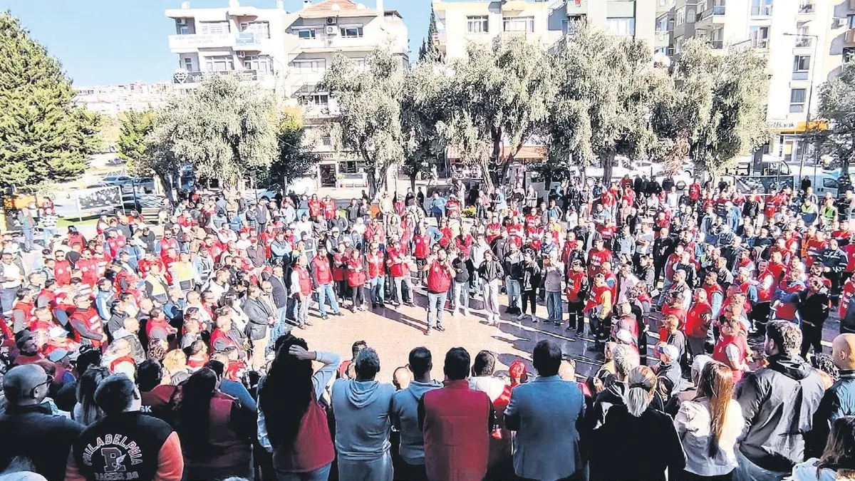 İzmir'de CHP'li belediyelerle belediyede örgütlü DİSK'e bağlı Genel İş Sendikası arasındaki toplu iş sözleşmesi görüşmeleri uyuşmazlıkla sonuçlandı. Buca Belediyesi'nde örgütlü Genel İş İzmir 5 No'lu Şube ile belediye adına toplu iş sözleşmesi görüşmelerini yürüten SODEM-SEN arasındaki TİS görüşmelerinde anlaşma sağlanamadı. Buca Belediyesinde çalışan bin 600 işçiyi ilgilendiren TİS görüşmelerinde SODEM-SEN'in vermiş olduğu yüzde 19'luk tekliften dolayı sendika grev kartını masaya sürdü. Yaşanan şok gelişme sonrası sendika aradan geçen süreçte uzlaşma olmazsa 12 Kasım 2024 tarihinde greve gitme kararı aldı. Dün sabah saatlerinde Buca Belediyesi Hizmet binası önünde toplanan binlerce işçi kapıya grev ilanını astı. Grev kararının asılmasının ardından basın açıklaması yapan Şube Başkanı Savaş Aras işverenin teklif ettiği yüzde 19'luk maaş artışına tepki gösterdi. Aras, "SODEMSEN' i yönetenlere çağrımızdır gelsinler Buca'da bize önerdikleri para ile bir ay geçinsinler. Bizler bugün bu alanda işverenimizi yani doğrudan belediye başkanımızı inisiyatif almaya ve tıkanan sözleşmemize müdahale etmeye davet ediyoruz" diye konuştu.