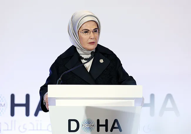 Emine Erdoğan, Katar'ın başkenti Doha'da "Doha Forum 2024" kapsamında düzenlenen "Filistin için tek yürek: İşgalin ve soykırımın karanlığında umudu koruma" oturumuna katıldı.