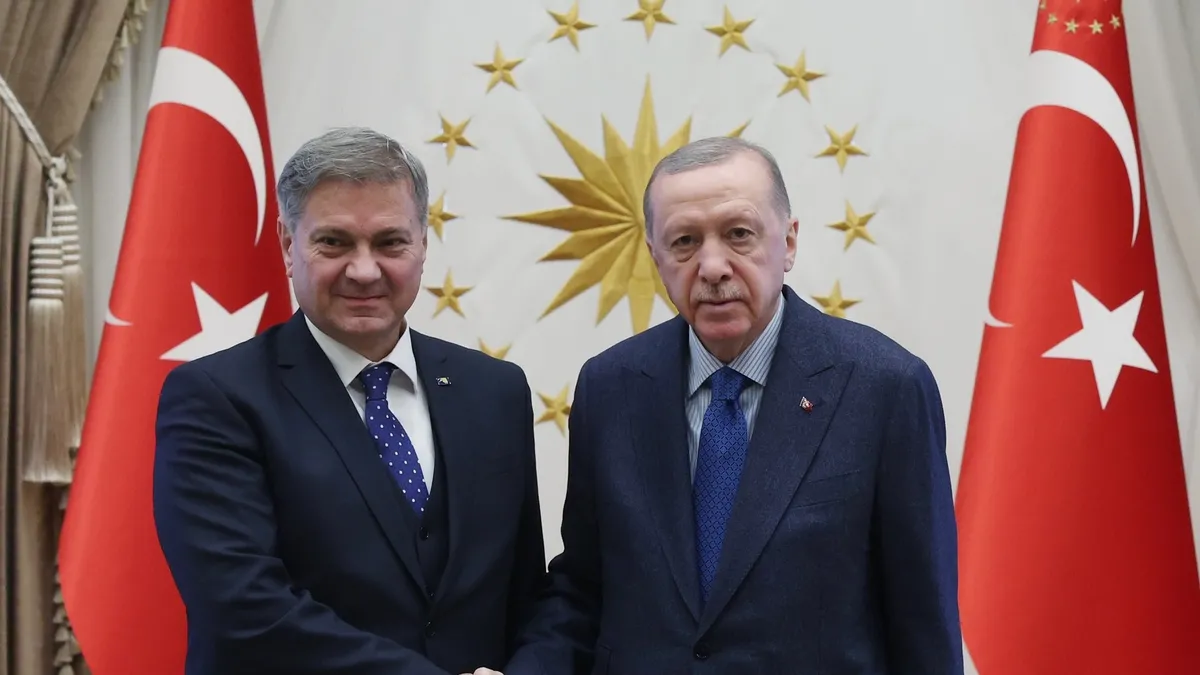 Başkan Recep Tayyip Erdoğan, Cumhurbaşkanlığı Külliyesi'nde Bosna Hersek Temsilciler Meclisi Başkanı Denis Zvizdic'i kabul etti.