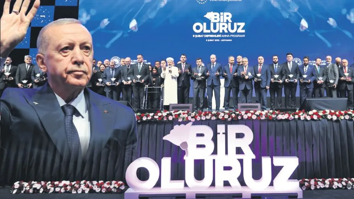 Cumhurbaşkanı Recep Tayyip Erdoğan, Kahramanmaraş merkezli depremlerin ikinci yıldönümünde Adıyaman Gençlik ve Spor Müdürlüğü Spor Salonu'nda düzenlenen "Bir Oluruz" temalı 6 Şubat Depremleri Anma Programı'na katıldı. Erdoğan, burada yaptığı konuşmada, herkesi derinden sarsan, yüreklerde büyük yaralar açan, milletin hafızasında asla silinmeyecek izler bırakan 6 Şubat depremlerinin ikinci sene-i devriyesinde olduklarını belirtti. 6 Şubat asrın felaketinde yitirdikleri 53 bin 737 kişinin her birine Allah'tan rahmet niyaz eden Erdoğan, salondakilerle birlikte şehitler için Fatiha Suresi'ni okudu. Deprem şehitlerinin ruhlarının şad, mekânlarının cennet olmasını dileyen Erdoğan konuşmasında özetle şunları söyledi: