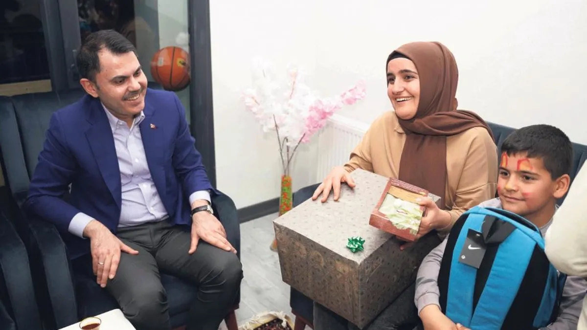 Çevre, Şehircilik ve İklim Değişikliği Bakanı Murat Kurum, Hatay'ın Defne ilçesinde yeni yapılan afet konutlarının bulunduğu Orhanlı Mahallesi'nde depremzede İpek ailesinin yeni evine konuk oldu. Ev sahibi Kader İpek'in (28), "İnsan evi değil de şehri yıkılınca evsiz kalıyor. O kadar acıdan sonra bu kadar feraha inanamıyorum. Bugünümüze o kadar şükrediyoruz ki; devletimizle gurur duyuyoruz" sözleri herkesi duygulandırdı. Hatay'da bir dizi temaslarda bulunan Çevre, Şehircilik ve İklim Değişikliği Bakanı Murat Kurum, Hatay'ın Defne ilçesinde afet konutlarının inşa edildiği Orhanlı Mahallesi'nde 2 çocuklu İpek ailesini ziyaret etti. Bakan Kurum deprem şehitlerini rahmetle andı, "Allah bir daha böyle acı keder vermesin. İnşallah Hatay eskiden çok daha güçlü olacak" dedi.