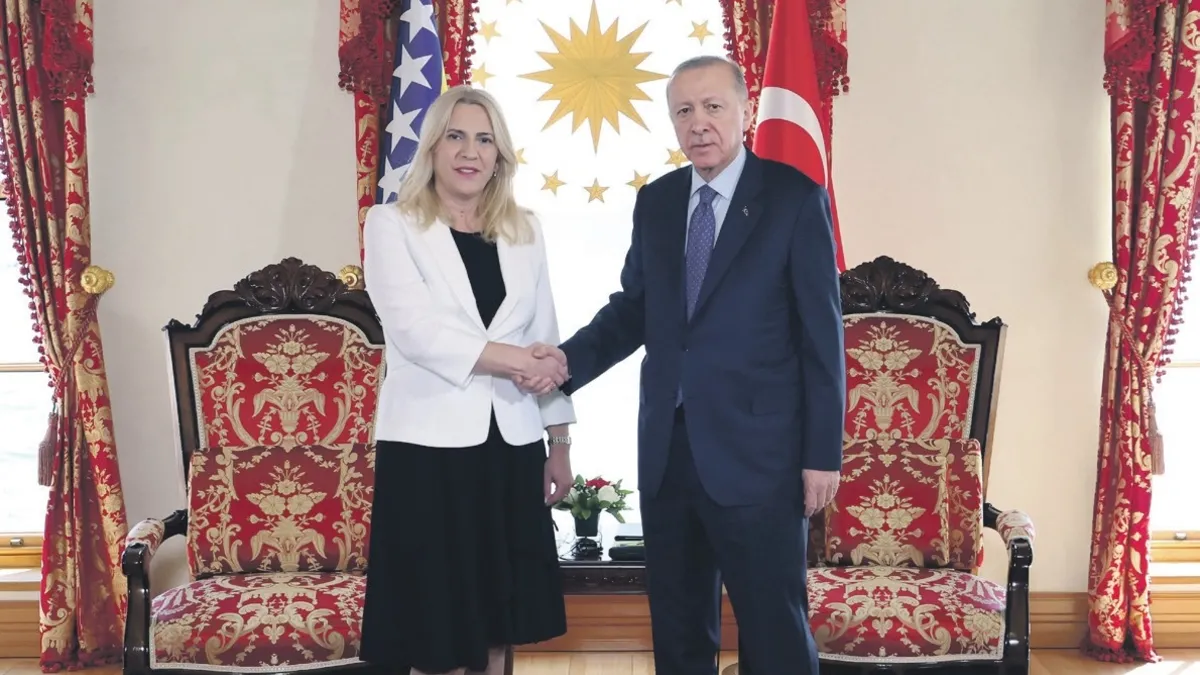 Önceki gün Bosna Hersek Demokratik Eylem Partisi Genel Başkanı Bakir İzzetbegoviç ile yaptığı telefon görüşmesinde, Sırp ayrılıkçılarla hükümet arasındaki gerilimin düşmesi için destek açıklaması yapan Başkan Erdoğan dün de Cumhurbaşkanlığı Dolmabahçe Ofisi'nde Bosna Hersek Devlet Başkanlığı Konseyi Başkanı Jelka Sviyanoviç ile bir araya geldi. Basına kapalı gerçekleşen görüşmede, Türkiye ile Bosna ikili ilişkileri, bölgesel ve küresel konular ele alındı. Erdoğan, İzzetbegoviç'le görüşmesinde uluslararası toplumun bölgede ayrılıkçılığa karşı güçlü bir duruş sergilemesi gerektiğine dikkat çekmişti.