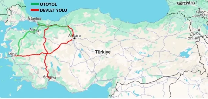 D-200, D-260 ve D300 karayolunda, Ankara, Eskişehir, Afyonkarahisar, Uşak, Manisa ili katılımlarından itibaren,
