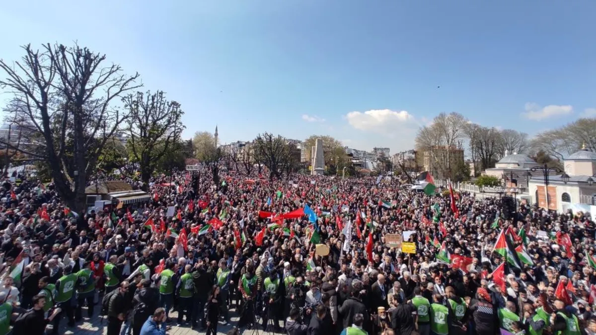 Çeşitli sivil toplum örgütleri vasıtası ile Beyazıd Meydanı'nda bir araya gelen kalabalık, Filistin'e destek için Ayasofya-i Kebir Cami-i Şerifi'ne kadar yürüdü. Yürüyüşe katılan vatandaşlar "Kahrolsun İsrail" sloganları attı. Yürüyüşte ayrıca Filistin halkının yaşadıklarına dikkat çekildi. On binlerce kişinin katıldığı yürüyüşte pankartlar ile beraber Türk ve Filistin bayrakları taşındı.