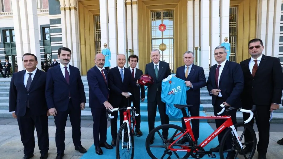 Başkan Recep Tayyip Erdoğan, 27 Nisan-4 Mayıs tarihlerinde düzenlenecek "60. Cumhurbaşkanlığı Türkiye Bisiklet Turu"nun tanıtımı dolayısıyla Gençlik ve Spor Bakanı Osman Aşkın Bak, Türkiye Bisiklet Federasyonu Başkanı Emin Müftüoğlu, Federasyon yönetimi ve milli sporculardan oluşan heyeti kabul etti.