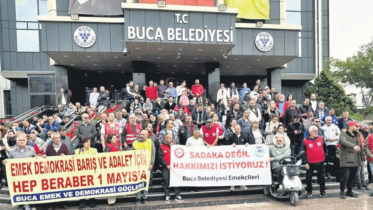 İzmir'de CHP’li belediyelerde çalışan işçiler, 1 Mayıs’a boynu bükük girdi. Aylardır düzenli maaş alamayan Buca Belediyesi çalışanları “Geçinemiyoruz” diyerek oturma eylemi başlattı. İkramiyelerini alamayan Konak Belediyesi memurları ise “Nerede yedin paraları söyle, boğazında kalsın!” şarkısıyla protesto gösterisi yaptı