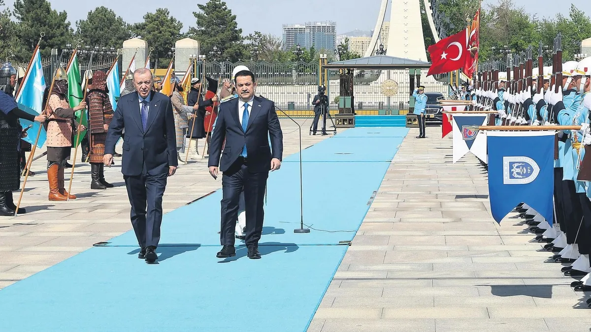 Başkan Erdoğan, Irak Başbakanı Muhammed Şiya es- Sudani'yi Cumhurbaşkanlığı Külliyesi'nde resmi törenle karşıladı. Erdoğan ve Sudani'nin, tören alanında yerlerini almalarının ardından iki ülkenin milli marşları çalındı. Tören alanında Cumhurbaşkanlığı Muhafız Alayı, tüfekli gösteri gerçekleştirdi. Türkiye ve Irak bayrakları önünde poz veren Erdoğan ve Sudani, daha sonra Külliye'deki salona geçti. Baş başa ve heyetler arası görüşmelerin ardından Erdoğan ve Sudani, ortak basın toplantısı düzenledi. Erdoğan, daha sonra konuk Başbakan onuruna resmi akşam yemeği verdi. ANKARA