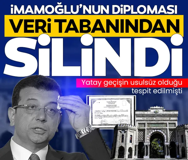 Son dakika haberi! Yolsuzluk soruşturması kapsamında tutuklanmasının ardından İstanbul Büyükşehir Belediye (İBB) Başkanlığı görevinden uzaklaştırılan Ekrem İmamoğlu'na, İstanbul Üniversitesi (İÜ) tarafından diplomasının iptal kararı tebliğ edildi. Üniversitenin İmamoğlu'na gönderdiği tebliğ yazısında, "Usulsüz yatay geçiş yapmanız nedeniyle, yatay geçiş kararınızın ve bu karara dayalı olarak elde ettiğiniz mezuniyetinizin ve diplomanızın 'yokluk' ve 'açık hata' gerekçeleriyle geri alınmak suretiyle iptal edilmesine karar verilmiştir" denildi.