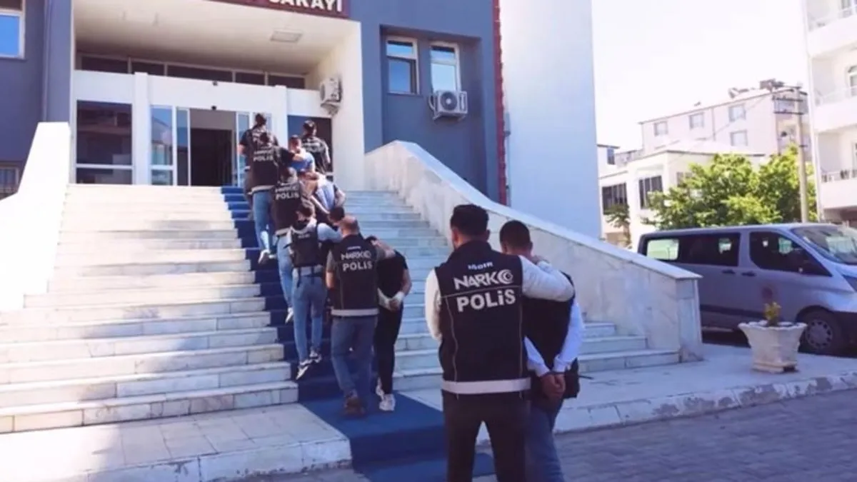 Üç ay süren teknik takip sonrası 10 adrese düzenlenen eş zamanlı operasyonda uyuşturucu ticareti yaptığı belirlenen 10 kişi gözaltına alındı. Ele geçirilen uyuşturucu maddeler ve silahlarla birlikte adliyeye sevk edilen şüpheliler tutuklandı.