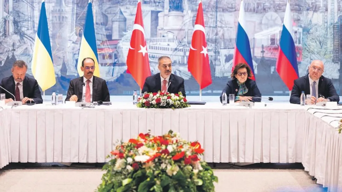 Rusya ile Ukrayna arasında Türkiye'nin arabuluculuğunda İstanbul'da düzenlenen toplantıların üçüncüsü dün yapıldı. Çırağan Sarayı'ndaki toplantıda konuşan Dışişleri Bakanı Hakan Fidan, (Nihai hedef, elbette ki barışa giden yolu inşa edecek bir ateşkestir" dedi. Ukrayna Ulusal Güvenlik ve Savunma Konseyi Sekreteri Rüstem Umerov ise toplantının ardından yaptığı açıklamada, "Türkiye'ye bu platformdaki kolaylaştırıcı rolü için teşekkür etmek istiyoruz, bir diyalog ve barış için önemli bir platform" diye konuştu. Ukrayna Parlamentosu'ndaki İnsan Hakları Komiseri Temsilcisi Yuriy Kovbasa da "Rus tarafına 3 yıldan uzun süredir esir olarak tutulan kişilerin serbest bırakılması için bir çağrıda bulunduk. Rusya tarafı da bunu kabul etti" ifadesini kullandı. Bu arada Umerov, sivillerin serbest bırakılmasının 1200'den fazla kişiyi ilgilendirdiğini, çalışmaları devam ettireceklerini anlattı.