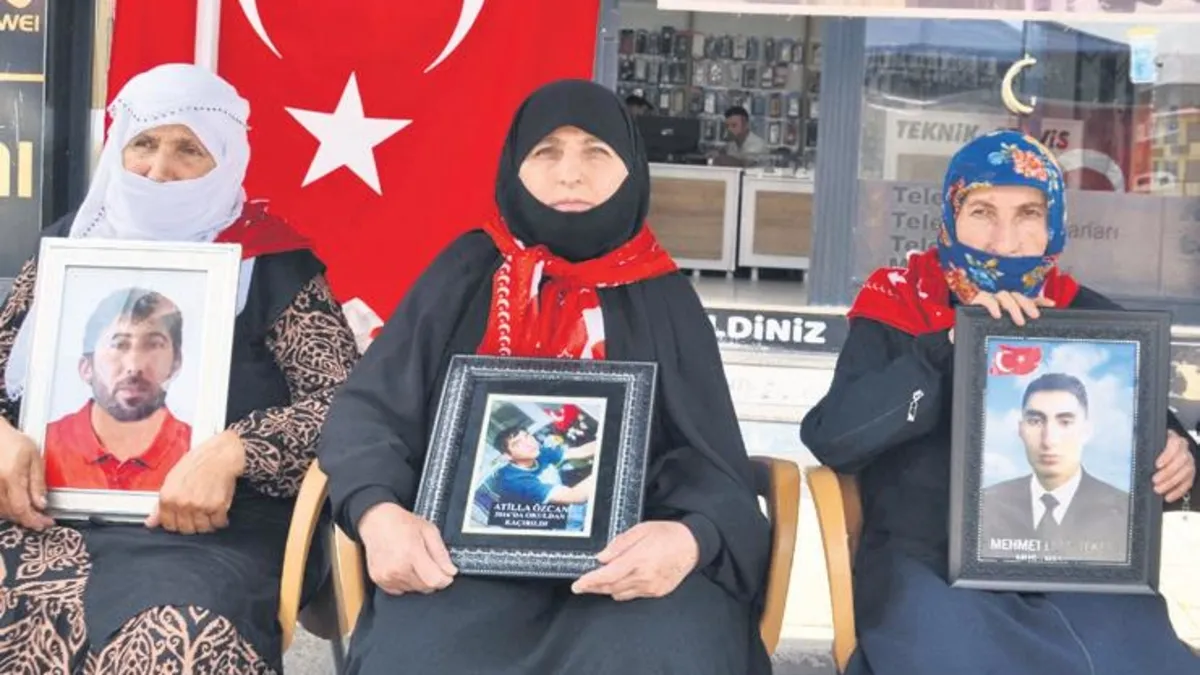Muş'ta çocuklarının terör örgütü PKK tarafından dağa götürülmesinden DEM Parti'yi sorumlu tutan aileler, partinin il başkanlığı binası önündeki eylemlerine devam etti. Her hafta çarşamba günü DEM Parti İl Başkanlığı binası önünde toplanan aileler, teslim olmalarını istedikleri çocuklarına seslerini duyurmaya çalıştı. Aileler "Anneler direniyor", "Evlat nöbetindeyiz" ve "Artık yeter yakamızdan düşün" yazılı pankartlar taşıdı. Eyleme katılan Alaattin Koçhan, gazetecilere, 10 yıldır oğlundan haber alamadığını söyledi. Oğluna kavuşmak istediğini belirten Koçhan, "Terörsüz Türkiye sürecini başlatan Cumhurbaşkanı ve emeği geçenlere teşekkür ediyorum. Bir an evvel bu sorun çözülsün. Evlatlarımızın evlerine dönmesini dört gözle bekliyoruz. 10 yıldır oğlumla görüşmedim" dedi. Oğlu için eyleme katılan Ayten Koçhan ise "Bu sürecin başlamasıyla çocuklarımızın eve dönmesini istiyoruz. Evlat hasretiyle yaşıyoruz. Oğlum Ersin, beni duyursan, görüyorsan gel teslim ol. Gelin artık yeter" diye konuştu.