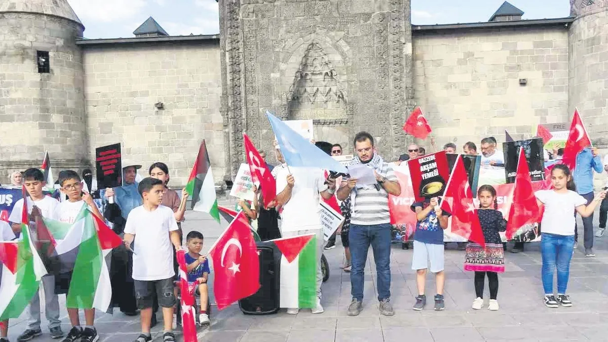 Erzurum'da, hekimler ve sağlık çalışanları, İsrail'in Gazze'ye yönelik zulmüne dikkat çekmek amacıyla 90 haftadır sessiz yürüyüş gerçekleştiriyor. Dün de Lala Mustafa Paşa Cami önünde bir araya gelen sağlık çalışanları, Türk, Filistin ve Doğu Türkistan bayrakları eşliğinde, taşıdıkları döviz ve pankartlarla Yakutiye Medresesi'ne yürüdü. Grup adına açıklama yapan Aile Hekimi Muhammed Mutlu, "Her hafta bu meydanda 'selam olsun Gazze halkına' diyerek konuşmaya başlıyorduk. Bu hafta öyle olmayacak. Çünkü artık hiçbir şey normal değil. Biz de normal olmayacağız. Kasten aç bırakıldıkları için kıvranan 2 milyon insanın üzerine tonlarca bomba yağdırılması normal mi? Bizim de hayatlarımızın her zamanki şekilde devam etmesinin mümkün değil. Sizi bu anormal durum karşısında anormal olmaya davet ediyoruz. 2 yıla yakın zamandır ekranlarımızda kanlı bedenler görmek her gün yaşadığımız bir olay haline gelmiş olabilir" dedi.