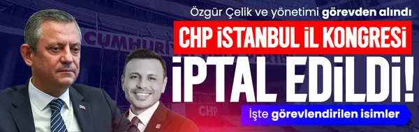 Son dakika haberi... CHP'nin İstanbul kongresi iptal edildi. CHP İstanbul İl Başkanı Özgür Çelik ve yönetimi görevden alındı. Öte yandan mevcutta yürüyen kongre sürecinin de durulmasına karar verildi.