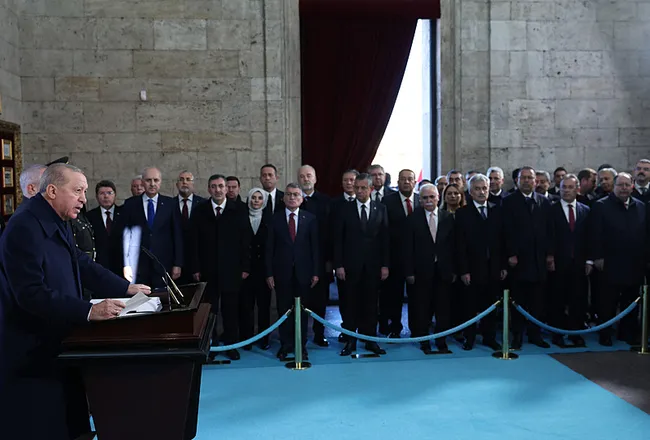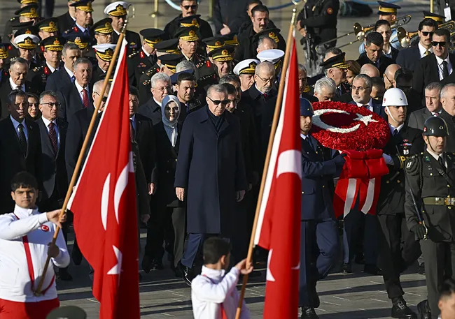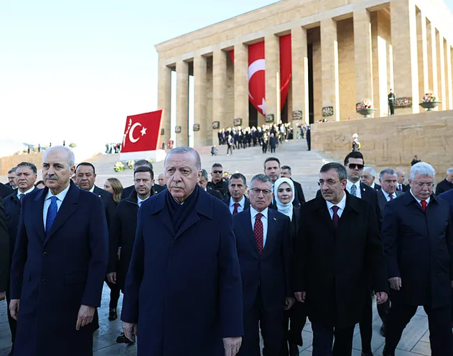 Başkan Erdoğan ve devlet erkanı, Türkiye Cumhuriyeti'nin kurucusu Mustafa Kemal Atatürk'ün ebediyete intikalinin 87. yılında Anıtkabir'deki resmi törene katıldı. Anıtkabir özel defterini imzalayan Erdoğan; "Emin ve ehil kadroların öncülüğünde Türkiye, küresel bir güç olma yolunda emin adımlarla ilerlemektedir" ifadelerine yer verdi.