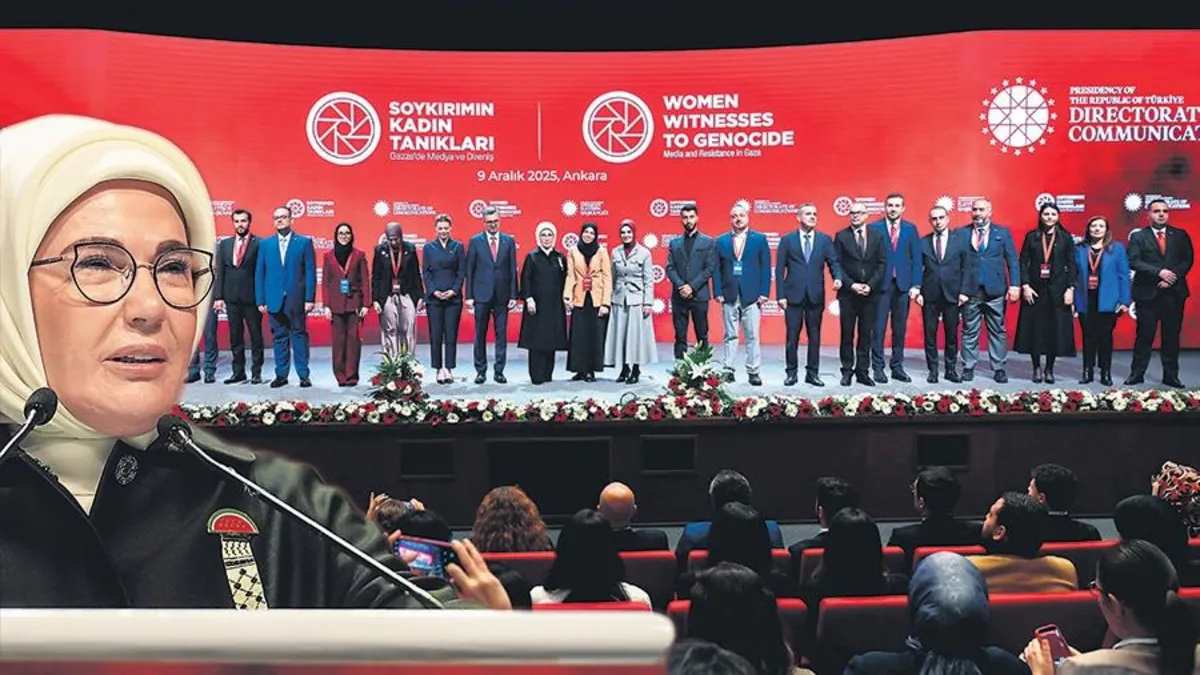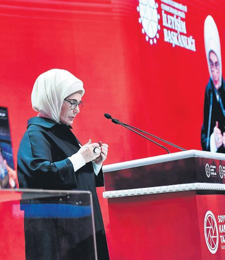 Emine Erdoğan, İsrail'in 2 yılda yaklaşık 300 gazeteciyi katlettiğini, bunların 37'sinin kadın olduğunu anımsatarak "Bu cesur kadınlardan biri Selma Muheymer'di. Oğlu, annesi, babası ve 4 kardeşiyle acımasızca öldürüldü. Selma sosyal medyada son paylaşımında 'Biz yok olursak dua bizi bir arada tutar' demişti. Şimdi gelin, vasiyeti yerine getirelim ve şehit kardeşlerimizin ruhları için bir Fatiha okuyalım" dedi. Emine Erdoğan duanın ardından 'Filistin'den bahsetmek bizler için böyle derin bir kalp yarasıdır' derken duygulandı.