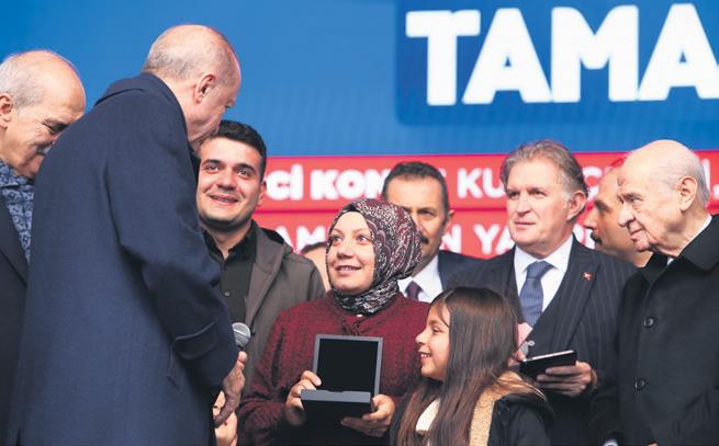 HATAY'DA geçen hafta sonu deprem konutları teslim töreninde yeni yuvasının anahtarını Cumhurbaşkanı Recep Tayyip Erdoğan'ın elinden alan vatandaşlardan Sıtkı Yılmaz, "Hayalimiz gerçek oldu" dedi. Deprem sonrasında eşi Hacer (29) çocukları Cemile Nur (8) ve Mustafa Aras (5) ile bir süre konteyner kentte kalan Yılmaz, yeni evlerine kavuşmanın mutluluğunu yaşadıklarını söyledi. Yılmaz, "Eğer Cumhurbaşkanımız başımızda olmasaydı bu evlere kavuşamazdık. Hayalimiz gerçek oldu ve onun elinden anahtarımızı aldık. Evimizi gezerken çok heyecanlandık. Hatay'a turist gibi gelip gidenler şimdi gelip buraları görsünler. Bir de 'Yapamazlar' diyorlardı" dedi. Murat KARAMAN - Ziya RAMOĞLU / SABAH