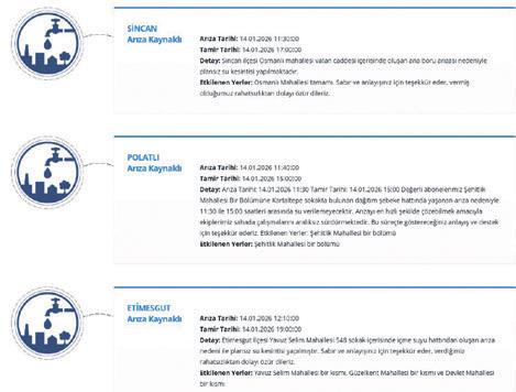 Yavaş'ın basın toplantısı sırasında yapılan su kesintilerinden bazıları şöyle: