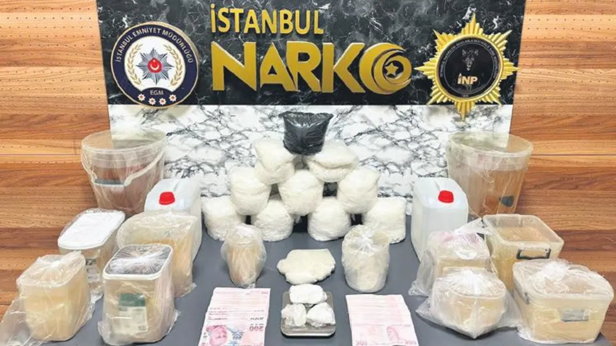İstanbul'da düzenlenen operasyonda uyuşturucu madde imalatı yapan 3 şüpheli suçüstü yakalandı. Aramalarda 41 kilo 883 gram metamfetamin maddesi ele geçirildi. İstanbul Emniyeti'ne bağlı Narkotik Suçlarla Mücadele Şube Müdürlüğü polisleri, Beylikdüzü'nde uyuşturucu madde imalatı ve satışı yapılan iki adrese ve bir araca eşzamanlı baskın yaptı. Uyuşturucu satıcısı olduğu belirtilen 3 şüpheli gözaltına alındı. Yapılan aramalarda 41 kilo 883 gram kısaca "MET" olarak adlandırılan metamfetamin maddesi, 9 kilo 900 gram kimyasal katkı maddesi, paketlenerek satışa hazır hale getirilen uyuşturucu maddelerin tartımında kullanılan bir hassas terazi, uyuşturucu madde ticaretinden elde edildiği değerlendirilen 32 bin 620 lira nakit para ve yine uyuşturucu madde imalatında kullanılan çeşitli malzeme ve aparatlar ele geçirildi. Suçüstü yakalanan şüpheliler İstanbul İl Emniyet Müdürlüğü'ne götürüldü.