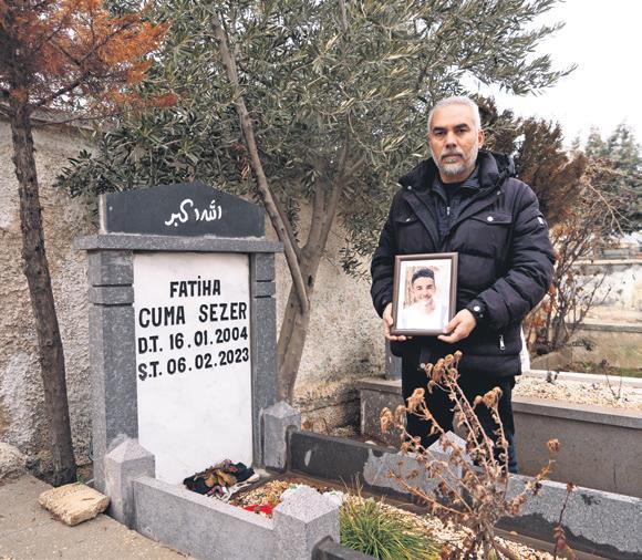 Gaziantep'te yaşayan Mustafa Sezer'in en büyük çocuğu olan ve 2022'de üniversite okumak için Kahramanmaraş'a giden Cuma Sezer, Onikişubat ilçesinde 6 Şubat'ta yıkılan Seçkinler Apartmanı'nda hayatını kaybetti. Depremlerde 19 yaşındaki üniversite öğrencisi oğlu Cuma'yı kaybeden gözü yaşlı baba Mustafa Sezer, her hafta mezarlığa gidip özlemini dindirmeye çalışıyor. Zamanın hiçbir şeyi unutturmadığını belirten Sezer, "Hâlâ biz 6 Şubat'tayız. Rabbim böyle takdir etmiş. Rabbim verirken de, alırken de biz razıydık. Oğlumu kurtarmak için elimizden geleni yaptık ama kurtaramadık. Hamdolsun en azından mezarı var. Daha mezarı olmayan insanlar var. İmanımıza sarılacağız" dedi. İHA