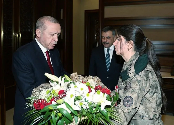 Başkan Erdoğan, Türk Polis Teşkilatı'nın 181'inci kuruluş yıldönümü ve Polis Haftası nedeniyle İçişleri Bakanı Mustafa Çiftçi ile beraberindeki heyeti Cumhurbaşkanlığı Külliyesi'nde kabul etti. Basına kapalı gerçekleşen kabulden fotoğraf paylaşıldı.