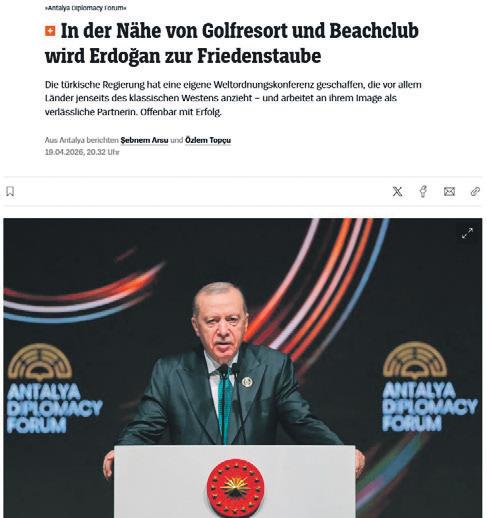 Söz konusu analizde Avrupa'ya yönelik eleştiriler de yer aldı. Alman basınında "Türkiye tüm dünyayı bir araya getiriyor, Almanya neden böyle bir şey yapamıyor?" ve "Almanya böylesi bir toplantıya neden katılmadı?" şeklinde tepkiler yer aldı. Antalya'daki görüşmelerde Avrupa'nın sınırlı bir rol oynadığına dikkat çekilen değerlendirmede, büyük Avrupa ülkelerinden üst düzey katılımın olmaması da eleştirildi. Cumhurbaşkanı Erdoğan'ın forum aracılığıyla geniş uluslararası ilişkiler ağını sergilediği, Almanya'nın bu ağın dışında kaldığı belirtildi. DIŞ HABERLER