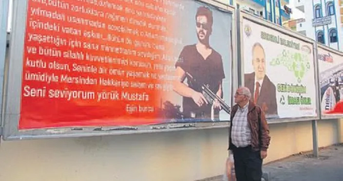 Mersin'in Erdemli ilçesinde billboardlarda elinde uzun namlulu silahı ve vatansever bir polisin resmini görenler, hemen yanındaki mesajı okudu. Bunun seven bir kadının sevdiği adama yaş günü kutlaması olduğunu anlayan vatandaşlar, bir polis eşinin uzaktaki sevdiği adama, kocasına yazdığı duygu dolu sözleri okuyunca gözyaşlarını tutamadı. Erdemli'nin güzel kızlarından Burcu, Hakkari'de vatanını korumak için canla başla görev yapan polis eşi Mustafa'ya duygularını aktarıyordu: "Zordur polis eşi olmak, en mutlu anları ayrı şehirlerde karşılamak, uykusuz beklemek onu sabaha kadar, gece nöbetlerinde özlemek. Onu yanındayken bile bütün zorluklara rağmen dimdik durmak, durmadan usanmadan sevebilmek o adamı, mesleğini, içindeki vatan aşkını… Bütün bu gururu bana yaşattığın için sana minnettarım sevdiğim. Allah seni ve bütün silahlı kuvvetlerimizi korusun, yeni yaşın kutlu olsun. Seninle bir ömür yaşamak ve yaşlanmak ümidiyle Mersin'den Hakkari'ye selam ve sevgiyle. Seni seviyorum Yörük Mustafa. Eşin Burcu."