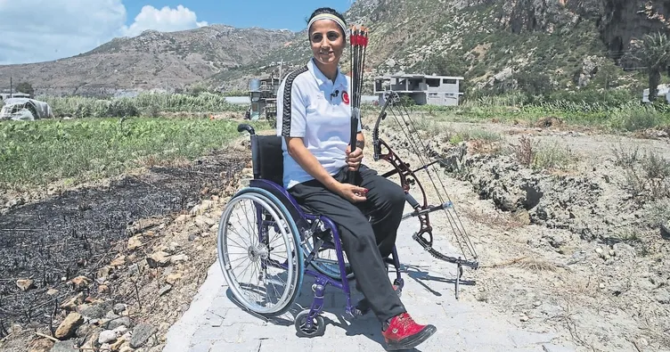 Paralimpik Oyunları'nda derece alabilmek için evinin yanındaki bahçeye kurduğu hedef tahtasında gece gündüz ter döküyor.