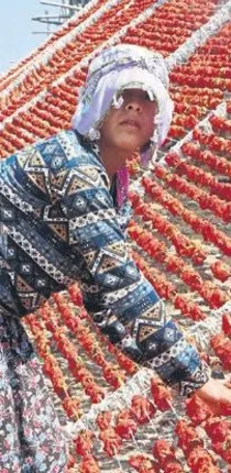 GAZİANTEP'İN vazgeçilmez yemeklerinden kış dolmasının yapımında kullanılan kurutulmuş sebze üretiminin büyük bir bölümünü elinde bulunduran Oğuzeli ilçesinin kurutmalıkları markalaşıyor UNESCO tarafından Gastronomi alanında yaratıcı şehirler ağına seçilen Gaziantep'in eşsiz yemeklerinden kış dolması yapımı için kullanılan sebzelerin kurutulması yaz sonuna kadar sürecek. Sezonu boyunca yaklaşık 200 bin kişiye gelir kapısı olan kurutmalıklar kente dönemlik işçi göçü çekiyor. Özellikle kadınlar tarafından içleri çıkarılan sebzeler daha sonra iplere bağlanarak kurutulduktan sonra satışa hazır hale geliyor. Her dizimde 50 adet sebze olan kurutmalıklar toptancıya 7-8 lira, tezgâhlarda ise 10-15 liradan satılıyor. Kentin kurutmalık diyarı olarak adlandırılan Oğuzeli ilçesinde sezonda 25 bin ton kurutmalık sebze üretildiğini söyleyen Oğuzeli Belediye Başkanı Mehmet Sait Kılıç, "Gastronomi şehri Gaziantep'in en önemli tedarikçisi olan Oğuzeli'nde kurutmalıklar üretiliyor. Buradan çıkan kurutmalıklar hem iklim nedeniyle hem de ürünün yöresel tadı nedeniyle Türkiye'de ender olan kurutmalıklardan. 4 çeşit kurutmalığımız bulunuyor. Kırmızıbiber, patlıcan, kabak ve tüylü acur dediğimiz sebzelerden yapılıyor. Oğuzeli'nde yılda yaklaşık 200 milyon adet kurutmalık üretiliyor" dedi.