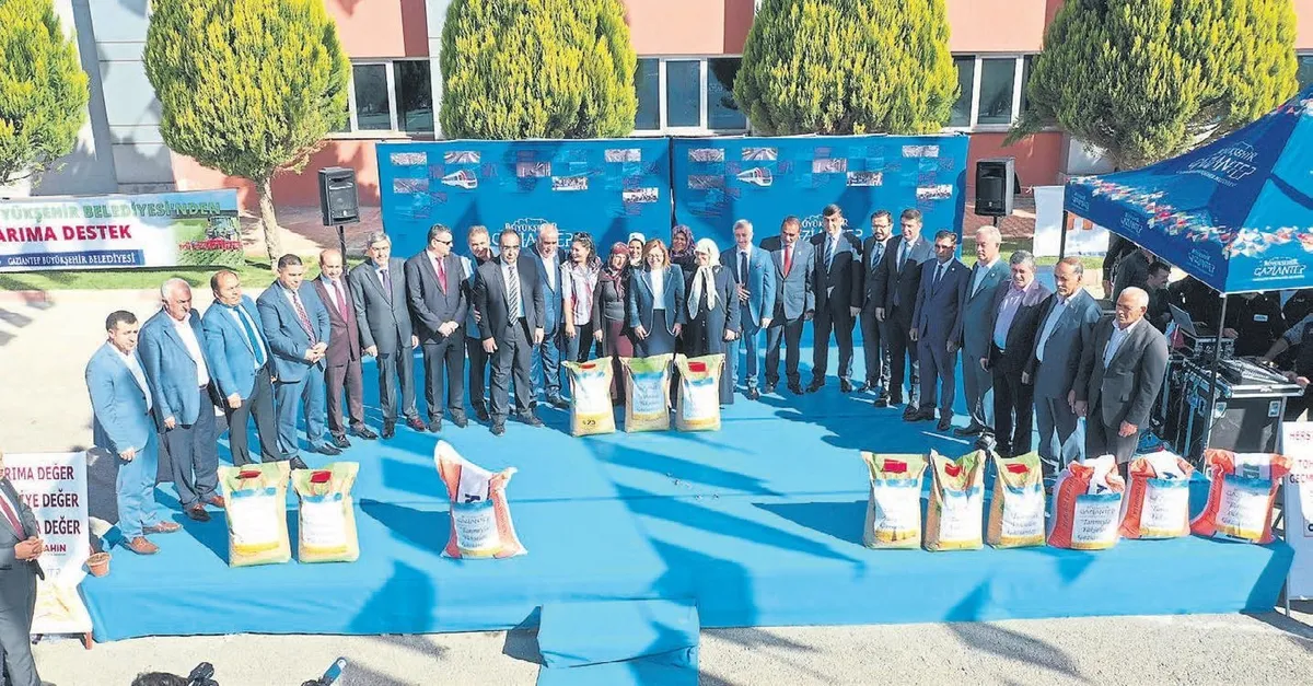 Gaziantep Büyükşehir Belediyesi Tarım ve Hayvancılık Bakanlığı Çiftçi Kayıt Sistemi'ne kayıtlı 3 bin 40 çiftçiye, bin ton buğday, 30 ton arpa ve 60 ton mercimek tohumu dağıttı. Ortadoğu Fuar Merkezi'ndeki törende konuşan Büyükşehir Belediye Başkanı Şahin, "Bu topraklara rabbim öyle bir nimet vermiş ki, bereketli hilalin tam ortasındayız" dedi. Başkan Fatma Şahin, "Toprak rahat olmazsa çiftçi, çiftçi rahat olmazsa esnaf rahat olmaz. Bunlar zincirin bir halkası. Şehir ekonomisi, toprakla, çiftçiyle, işçiyle başlıyor. Sanayide yüksek teknolojiye geçerken sanayinin altyapısına bak. Gıdaya dayalı sanayide Türkiye beşincisiyiz. Bu önemli bir şeydir" dedi. Daha önce çiftçiye verdikleri destekleri de anımsatan Şahin, "Küçük baş hayvancılığı canlandırmamız lazım. Meralara, hayvanın su içmesi için yalak yapılması gerekiyor güneş enerjisi koyacağız, sondaj yapacağız, çıkan sondajla güneş enerjisini ısıtacağız, yalakla hayvan suya kavuşacak. Suya kavuşunca süte kavuşacak. 'Hijyen süt mutlu kadın' projesi geliştirdik, bu kıymet vermedir. Biz birbirimize önem verirsek Allah da paramızın bereketini verir" diye konuştu. Tarımsal projelerde yeni hedeflerinin Antep Peyniri'ni geliştirmek olduğunu söyleyen Şahin, "Bu memleketin peyniri var ya ne mozeralla gibi ne hellim gibi. Antep peynirini markalaştırmamız lazım. Hak ettiği yerde değil. Peyniri markalaştıracağız. Çok üreteceğiz. Çok tüketeceğiz. Çok satacağız. Çok kazanacağız. Çok kazanınca şehir ekonomisi rahatlayacak. Bu Gaziantep modeli bütün Türkiye'ye model olacak" dedi. AK Parti Gaziantep İl Başkanı Mehmet Eyup Özkeçeci, Şehitkamil Belediye Başkanı Rıdvan Fadıloğlu, Şahinbey Belediye Başkanı Mehmet Tahmazoğlu, Oğuzeli Belediye Başkanı Mehmet Sait Kılıç, Gaziantep İl Tarım ve Orman Müdürü Mehmet Karayılan, Şehitkamil Ziraat Odası Başkanı Cuma Yiğit ve çiftçilerin katıldığı törende konuşmaların ardından çiftçilere tohum dağıtımı yapıldı.