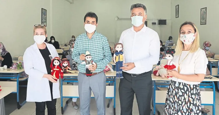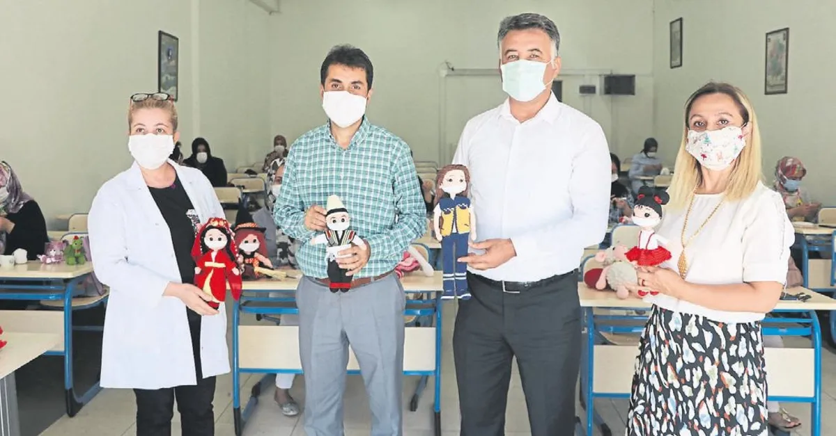 Kahramanmaraşlı kadınlar, kente ait tescilli bebekler "Çete" ile "Senem Ayşe"nin de aralarında bulunduğu amigurumi oyuncakları, yeni tip koronavirüsle (Kovid-19) mücadeleye dikkati çekmek amacıyla maskeli üretiyor. Onikişubat ilçesindeki Suzan ve Abdülhakim Bilgili Halk Eğitim Merkezi'nde oyuncak örgü bebek üzerine eğitim alan 16 kadın kursiyer, çocukların Kovid-19'a karşı maske kullanımını özendirmek için kolları sıvadı. Kursiyerler, başta Türk Patent ve Marka Kurumunca 5 yıllık tasarım tescili alan ve kentin düşman işgalinden kurtulmasına önemli katkı sağlayan Kuvayımilliye unsurları çeteleri simgeleyen "Çete bebek" ile yörenin kıyafetleriyle tasarlanan "Senem Ayşe" olmak üzere birçok çeşitteki örgü oyuncakları, tıbbi maskeli üretmeye başladı. Çocuklara sağlık açısından zarar oluşturmayacak maddeler kullanılarak hazırlanan örgü bebekler, internet üzerinden alıcılarına ulaştırılıyor. İlçe Milli Eğitim Müdürü Akif Bulut, amigurumi oyuncakların büyük emekle üretildiğine dikkati çekti. Bu oyuncakların vatandaşlara ve belli firmalara siparişle satıldığını anlatan Bulut, "Oyuncak bebeklerimiz tamamen doğal maddelerden üretilmektedir. Çocuklarımızın sağlığıyla ilgili en ufak zararlı madde kesinlikle içermemektedir. Kovid- 19 salgını sebebiyle çocuklarımıza, oyuncaklarımızla maske kullanıma ilişkin eğitim vermekteyiz" dedi.