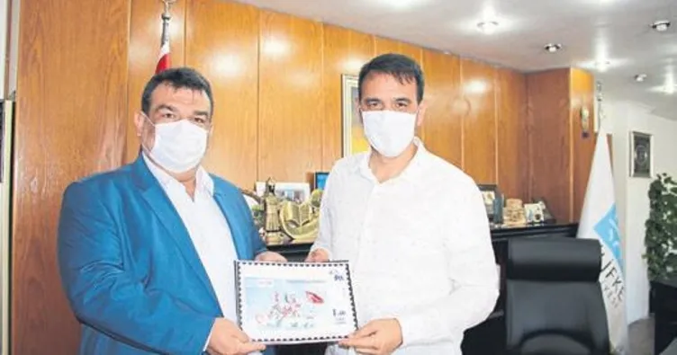 SİLİFKE Belediye Başkanvekili Sadık Altunok'u makamında ziyaret eden PTT Mersin Başmüdürü Kağan Uysal, kurum tarafından bastırılan Silifke'ye özgü özel pulların büyütülmüş çerçeveli fotoğraflarını hediye etti. Kendisini ziyarete gelen Mersin Başmüdürü Kağan Uysal'a nazik ziyaretlerinden dolayı teşekkür eden Başkanvekili Sadık Altunok yaptığı açıklamada, "Belediye olarak başmüdürlüğümüzle birlikte bir çalışma yürüterek Silifke isminin posta pulları aracılığıyla tüm dünyaya duyurulmasını istedik. Bastırılan pulların üzerinde ilçemizde yetişen çileğimiz ve ilçemiz Silifke'yi anlatan folklor, taş köprü, yoğurt, mavi yengeç, kuş cenneti, aşukmaşuk, müzik, defne yaprağı ve tarihi yerlerimiz yer almaktadır. Mersin Başmüdürlüğümüz tarafından bastırılan posta pulları bizlere teslim edilmiştir" dedi.
