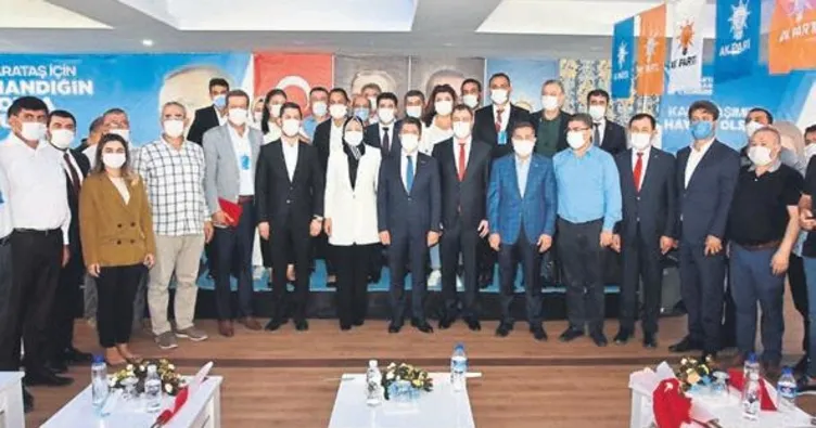 ADANA'DA AK Parti Karataş İlçe Kongresi'nde Başkan İbrahim Yüce, hizmet bayrağını yeni seçilen Başkan Süleyman Özlem Ünal'a teslim etti. Koronavirüse karşı başta maske, mesafe ve temizlik kuralları olmak üzere tüm önlemlerin alındığı AK Parti Karataş İlçe Kongresi'ne AK Parti İl Başkanı Mehmet Ay, Milletvekilli Ahmet Zenbilci, Karataş Belediye Başkanı Necip Topuz, AK Parti Adana İl Kadın Kolları Başkanı Sevil Can, İl Gençlik Kolları Başkanı Mustafa Yıldız, il ve ilçe yönetim kurulu üyeleri, önceki dönem ilçe başkanları ile davetliler katıldı. Divan başkanlığını AK Parti Adana İl Başkan Yardımcısı Mustafa Özkan'ın yaptığı kongrede Süleyman Özlem Ünal, AK Parti Karataş İlçe Başkanlığı'na seçildi. Yönetim kurulu üyeleri ise şu isimlerden oluştu: Adnan Aslan, Bayram Alı Aydın, Ediz Atalay, Hasan Usta, Hüseyin Yılmaz, İbrahim Karaikiz, Mehmet Gangal, Mehmet Salih Karaaslan, Mustafa Mıhcı, Salih Varlı, Süleyman Şimşek, Tuğba Çopur, Yalçın Şahin. Başkan Mehmet Ay, bayrağı devreden İlçe Başkanı İbrahim Yüce'ye bugüne kadar yapmış olduğu hizmetlerden dolayı teşekkür ederek plaket takdim etti.