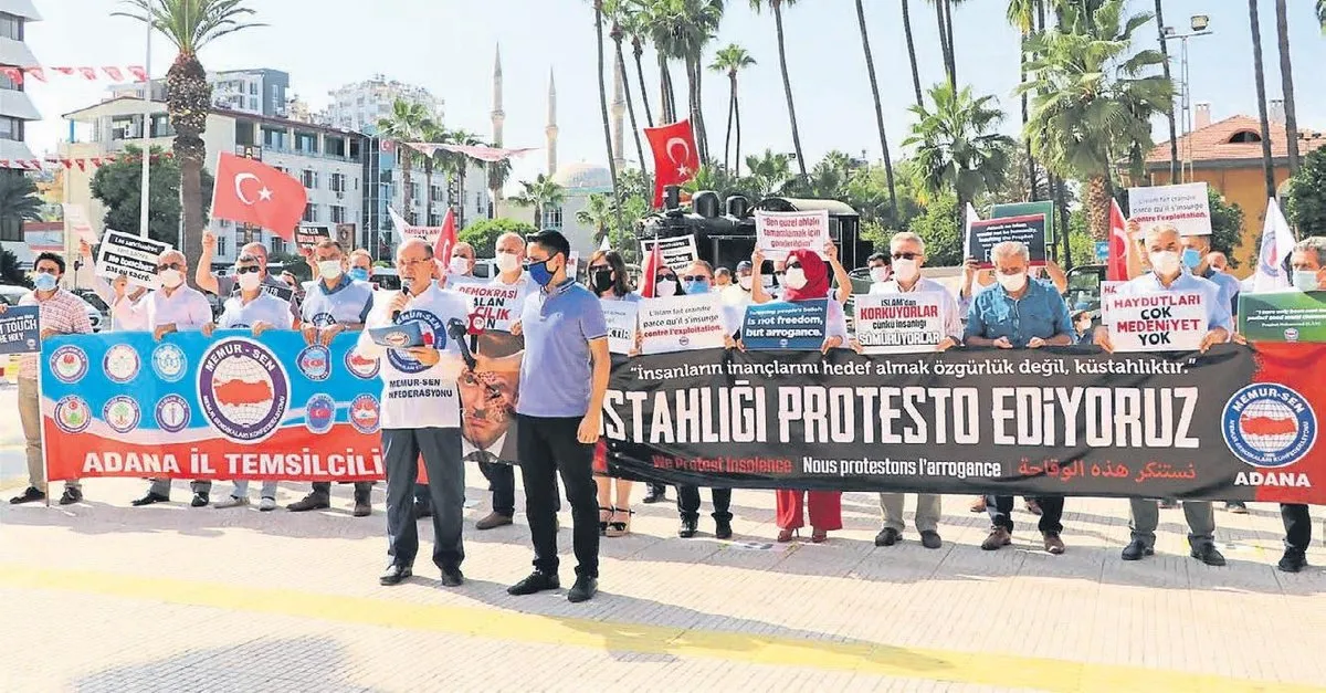 ADANA'DA Memur-Sen, Fransız Cumhurbaşkanı Emanuel Macron'un İslam dinine ve Peygamberimize yönelik hakaretlerini düzenlediği basın açıklamalarıyla protesto etti. Memur- Sen Adana İl Temsilcisi Mehmet Sezer'in İstasyon Meydanında yaptığı basın açıklamasına Memur- Sen'e bağlı sendikaların şube başkanları, STK yönetici ve gönüllüleri ile çok sayıda vatandaş katıldı. Fransa'nın son zamanlarda cinnete esir politikalarına bir yenisini daha ekleyerek, Hz. Muhammed'e hakaret eden sözde karikatürlere fikir özgürlüğü adına sahip çıkmasına ve Müslümanları aşağılamasına tepki gösteren Sezer, yabancı düşmanlığı, ırkçılık ve İslamofobinin, Avrupa aklını esir aldığını, aşırı siyasetin ürettiği politikaların siyaseti belirler hale geldiğini vurguladı.