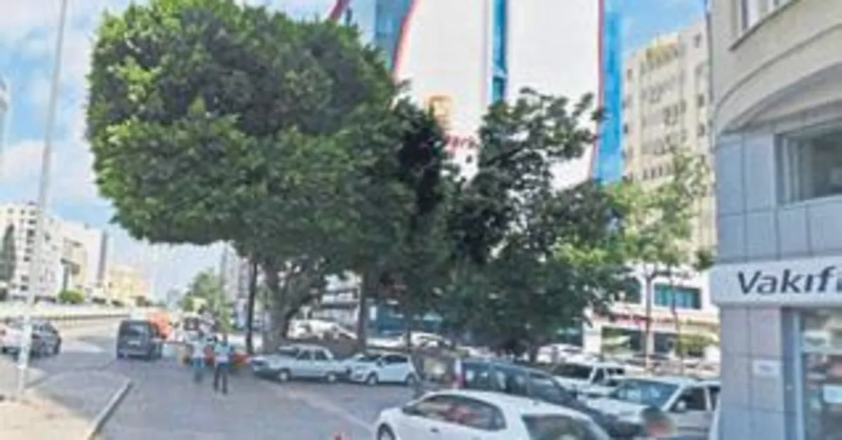 Turhan Cemal Beriker Bulvarı üzerinde Adana İş Merkezi'nin önündeki ağaçların ibretlik fotosu.