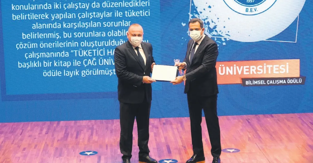 Ticaret Bakanlığı'nın her yıl tüketici haftasında verdiği "Tüketici Ödülleri" kapsamında Çağ Üniversitesi "Bilimsel Çalışma Ödülü" dalında ödüle layık görüldü. Üniversite bütçesinden desteklenen, Hukuk Fakültesi öğretim elemanlarından Arş. Gör. Özge Demirdelen, Öğr. Gör. Hasan Basri Ökan, Öğr.Gör. Venüs Cömert, Öğr.Gör. Gökçe Kelahmet ve Arş.Gör. Selen Demirkaya'nın araştırmacı olarak yer aldığı ve Dr. Öğr Dr.Öğr.Üyesi Sami Doğru yürütücülüğünde gerçekleştirilen "Hukuk Klinikleri Uygulama ve Araştırma Merkezi Vasıtasıyla Öğrencileri Uygulamayla Buluşturma ve Topluma Katkı Projesi/Tüketici Hukuku ve Hakları" Projesinin ürünü olarak basılan "Tüketici Hakları" isimli kitap nedeniyle verildi. Okuyucuyla buluşan kitabın editörlüğünü Dr. Öğr. Üyesi Sami Doğru, Arş.Gör. Özge Demirdelen, Öğr. Gör. Hasan Basri Özkan ve Arş.Gör. Selen Demirkaya yaptı.
