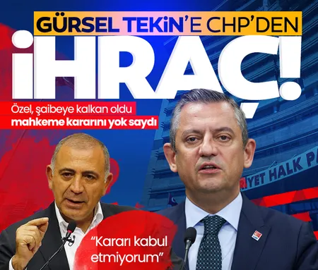 Şaibeli kongreye kalkan olan ve mahkeme kararını yok sayan Özgür Özel geçtiğimiz gün katıldığı televizyon programında Gürsel Tekin'in partiden ihraç edildiğini açıkladı. Özel, "Gürsel Tekin CHP'den ihraç edildi. Ne genel merkeze ne il başkanlığına Cumhuriyet Halk Partililerin seçmediği biri giremez" dedi.