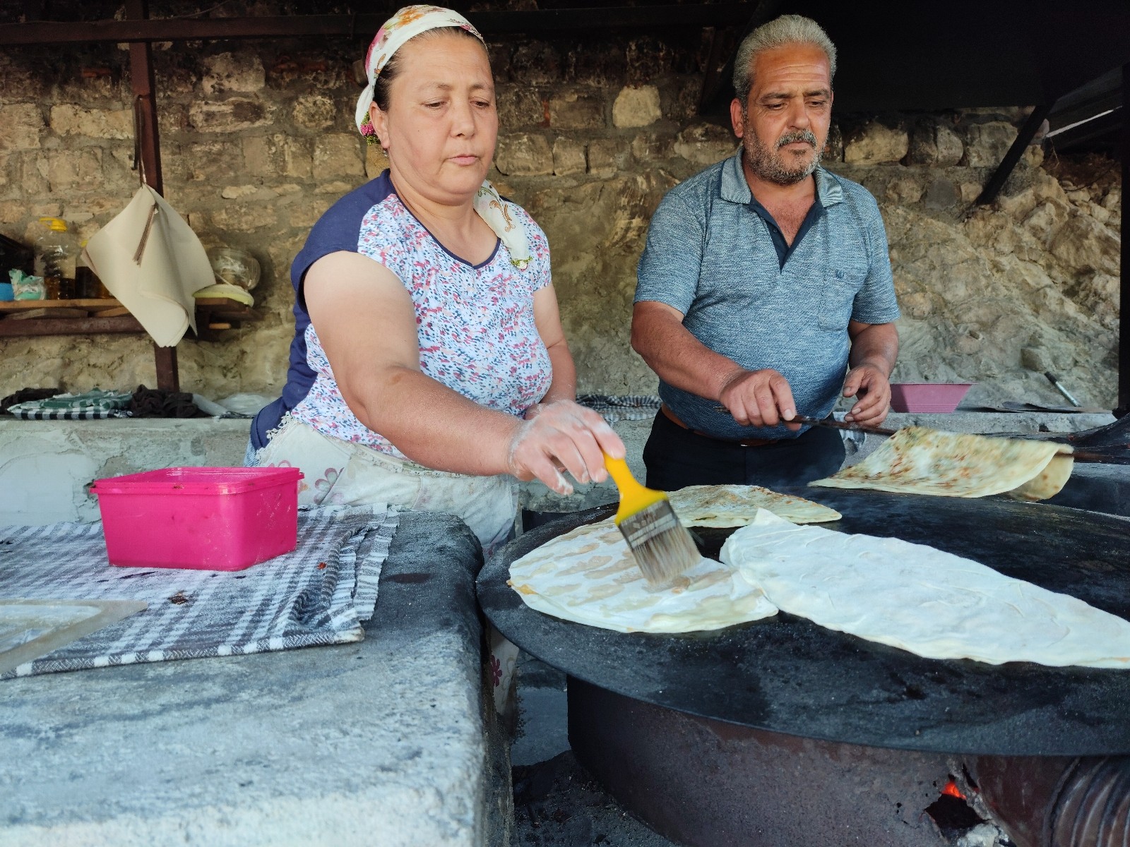 3 yıldır tandır ekmeği yapan 3 çocuk annesi Şirvan Keleş, "Köydeki kadınlarımız için bu iş geçim kaynağı oldu. Herkesin bir iş sahası oldu. Biberli ve gözleme yapıyoruz. Biberlinin içinde soğan, çökelek ve baharat türlerimiz var. Biberlinin tadını en güzel veren kekiktir ve tandırda pişiriyoruz. Gözlemede patatesli, peynirli ve ıspanaklı çeşitlerimiz vardır. Ispanaklı gözlemede çökelek, zeytin yağı, ıspanak ve biberimiz bulunuyor. Patatesli gözlemede biber, yağ ve patates bulunmakta. Peynirli gözlemede ise künefe peyniri, maydanoz ve tuz vardır. Hamurumuz mayalıdır" dedi.