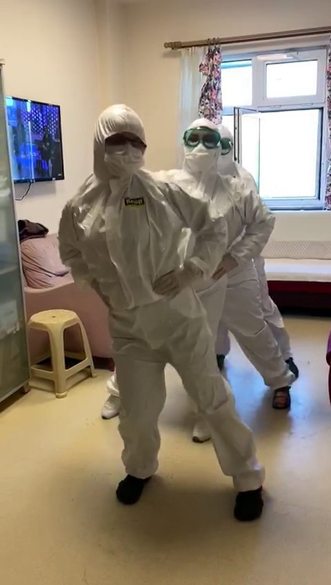 Yeni tip korona virüs salgınına karşı en ön saflarda yer alan sağlık çalışanlarından 2’si yakalandığı hastalığı yenerek sağlığına kavuştu. İki kadın personel hastalığı yenmelerini 2 mesai arkadaşıyla penguen dansı yaparak kutlarken o anlar renkli görüntüler oluşturdu.