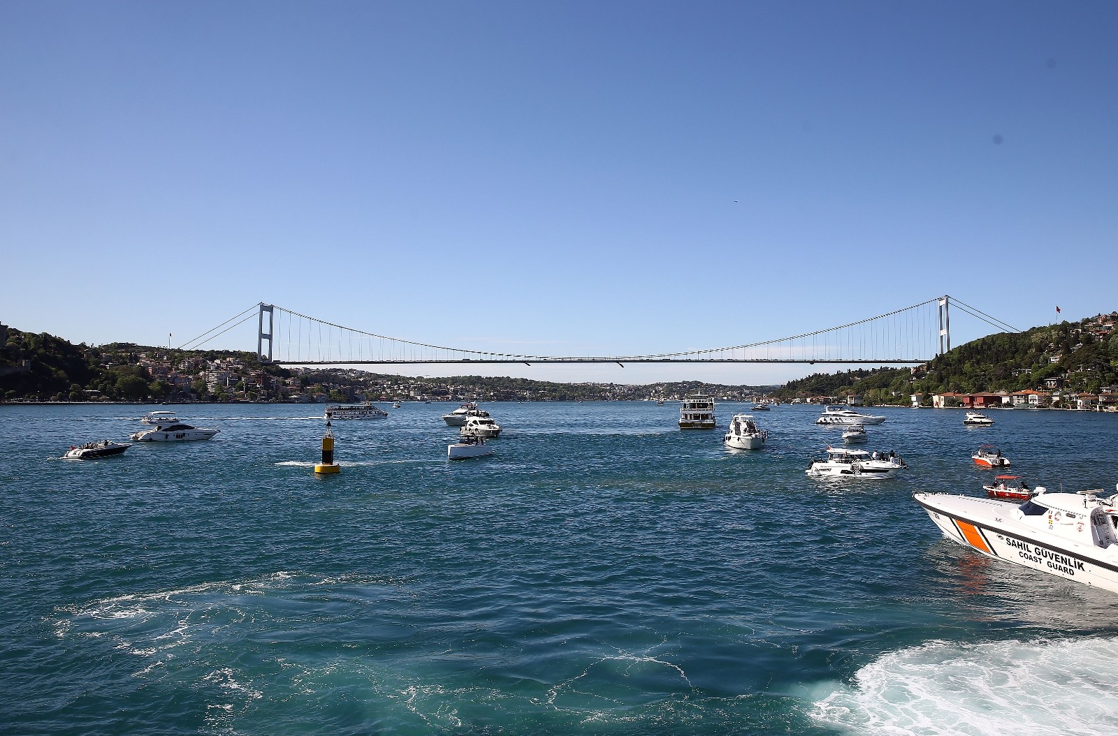 Süper Lig’de şampiyonluğuna ilan eden Beşiktaş, donanmasıyla birlikte Boğaz’da gövde gösterisi yaptı. Anadolu Hisarı’ndan tekneye binen siyah-beyazlı futbolcular ve yöneticiler, Vodafone Park’a doğru yola çıkarken, Beşiktaş kafilesini 100’ün üzerinde tekne takip etti. Boğaz turunda futbolcular büyük coşku yaşarken, Boğaziçi siyah-beyaz oldu. Taraftarlar teknelerde meşaleler yakarken, havai fişekler attı.